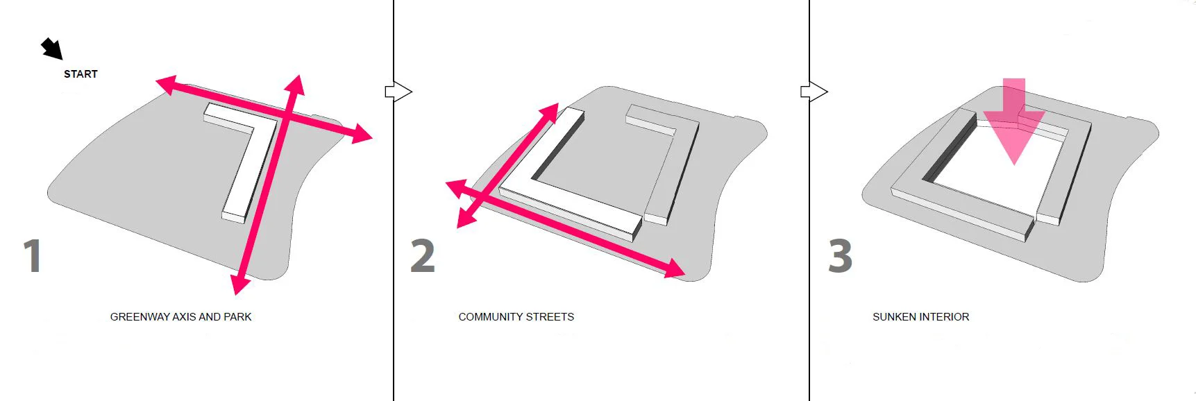 The Putuo Axis is a large-scale mixed-use project that will function as an urban core for the district of Putuo. The project is strategically located at the intersection of the adjacent developments, creating a cross-axis between all streets and a natural center for city dwellers.