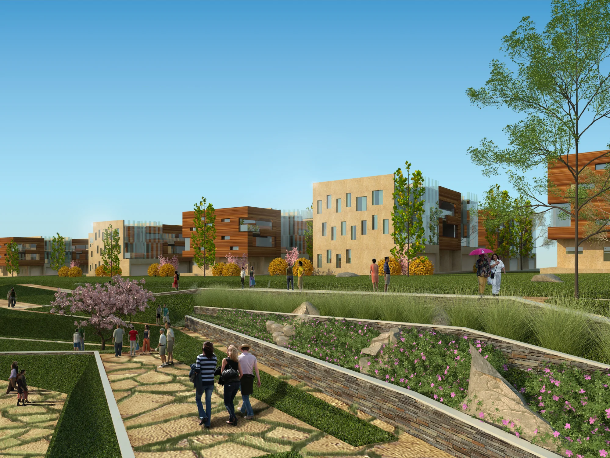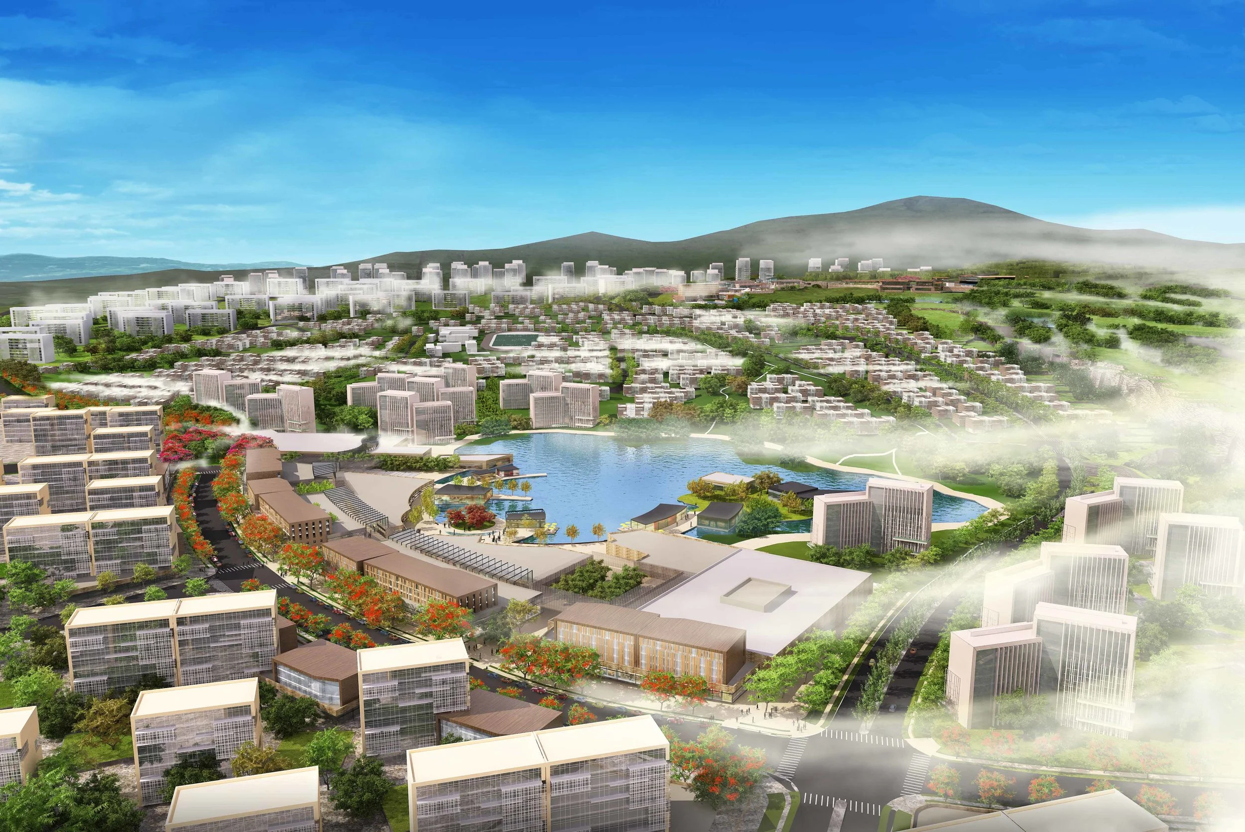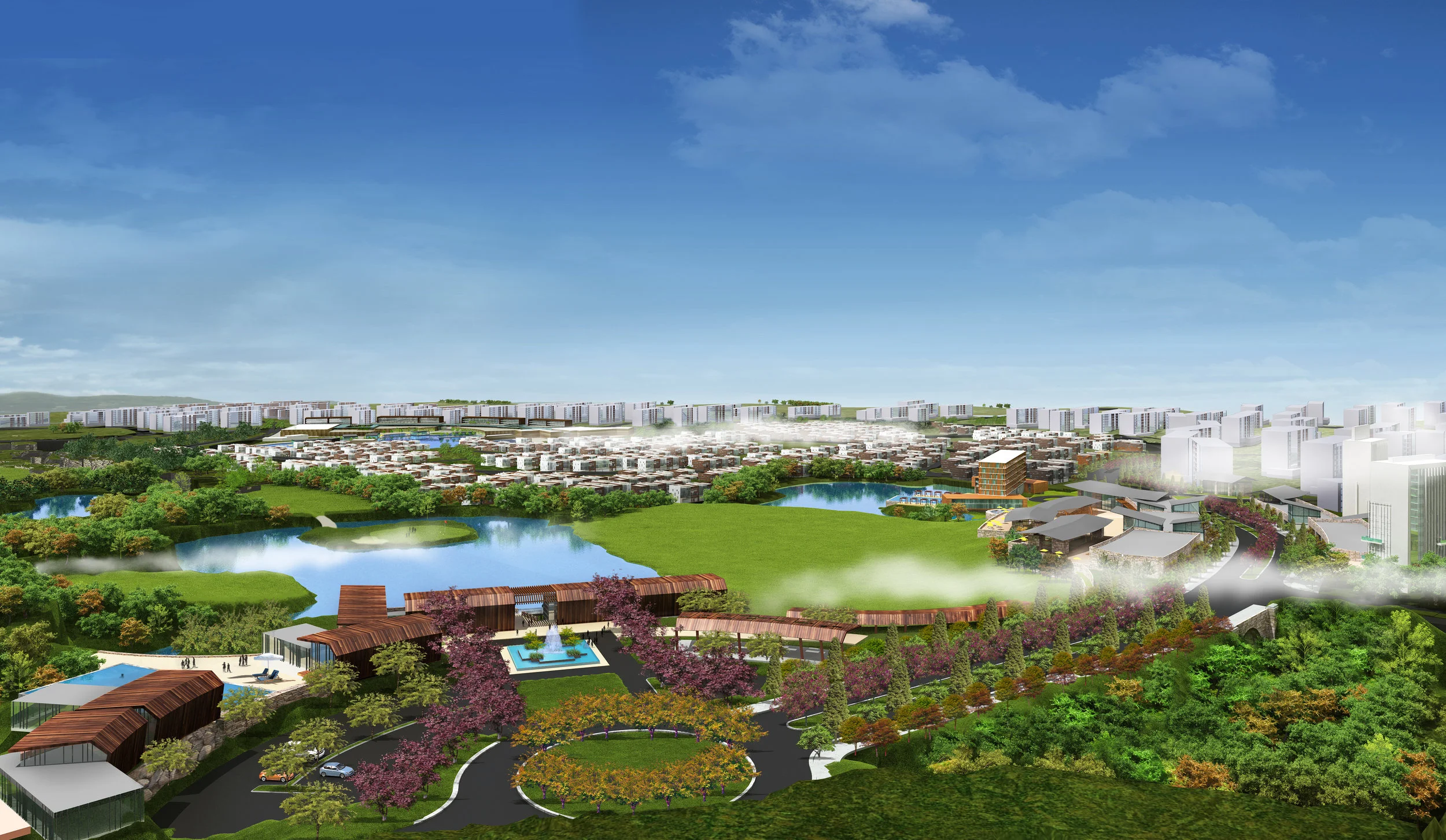 Located minutes east of the Taiyuan City Center, and a short distance from the airport, the Taiyuan Dongfeng New Town Master Plan combines convenient access with natural landscape. Sited along the foothills of the Dong Mountains with an unfolding slope to the southwest, the resort community takes advantage of the natural surroundings, clean air and uncompromised views.